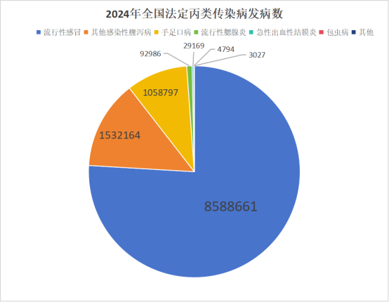 图2. 2024年全国法定丙类传染病报告发病数