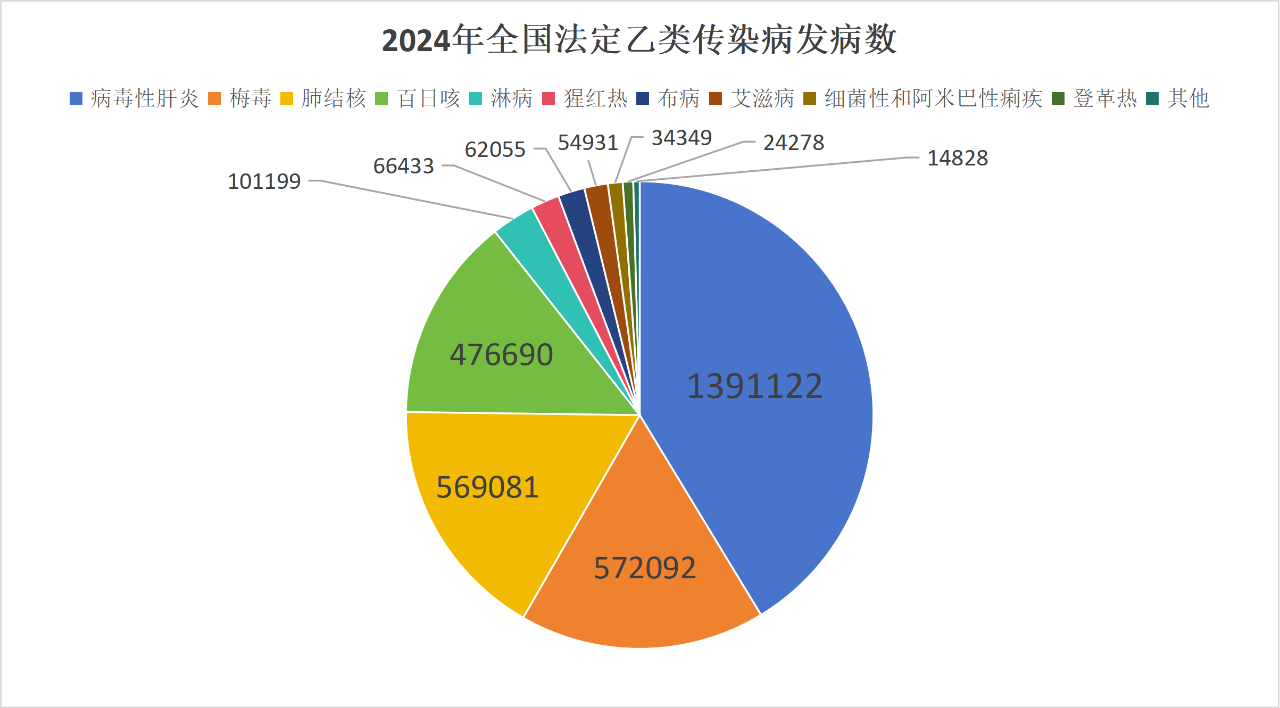 图2. 2024年全国法定乙类传染病发病数(不含新冠)