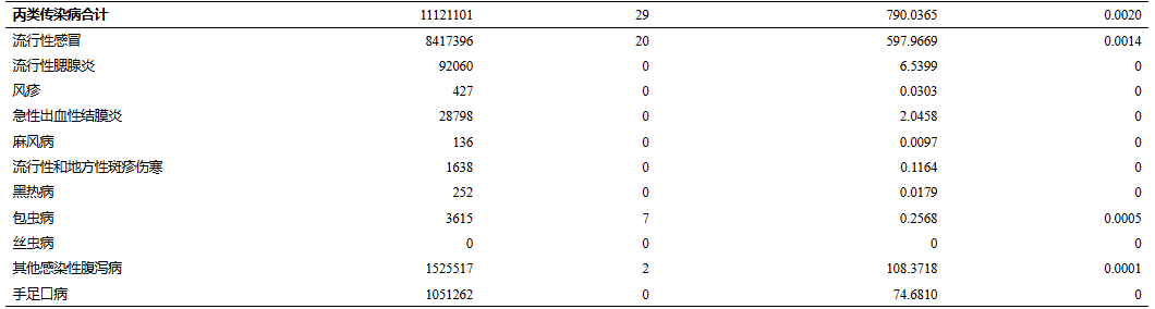 4.病毒性肝炎报告发病、死亡数为甲型肝炎、乙型肝炎、丙型肝炎、丁型肝炎、戊型肝炎和未分型肝炎的合计数。